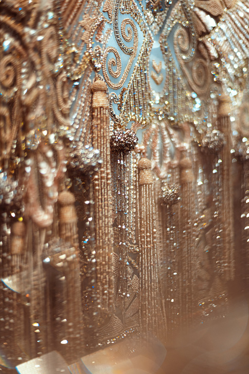 The use of drapery, Greco-Roman pendants, arabesques, and cascading chains on precious fabrics creates a fluid and mystical aura. The metallic inlays capture the brilliance of the sun on the sea, while the palette unfolds in Mediterranean colors and metallic reflections.