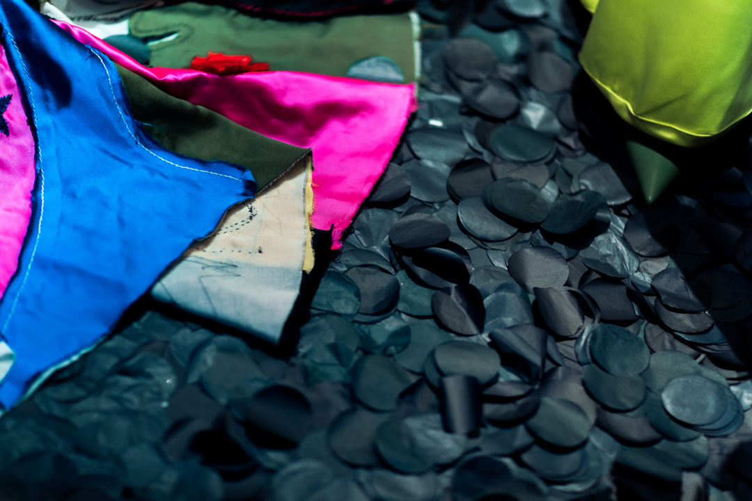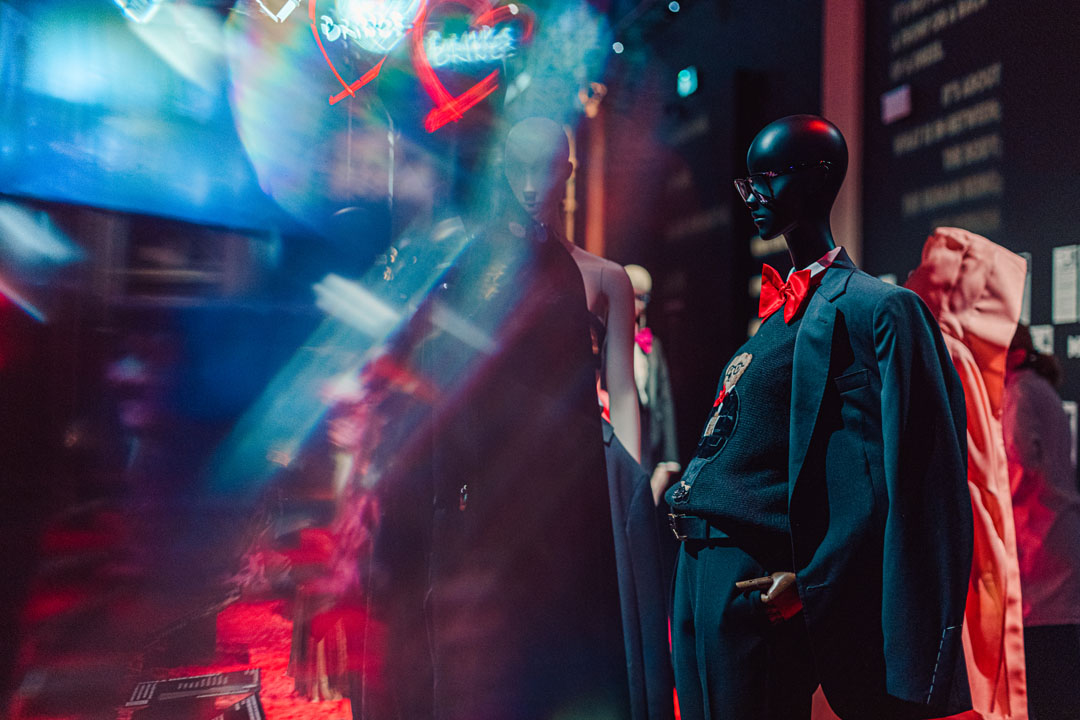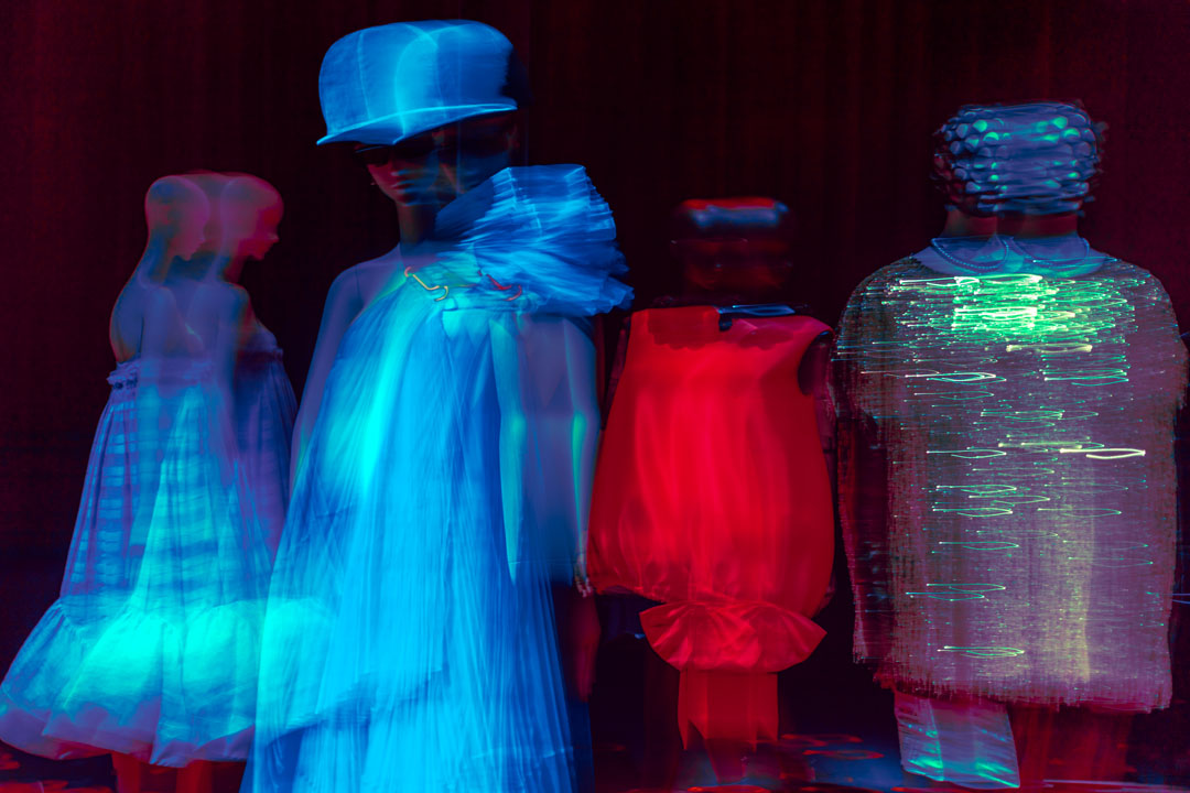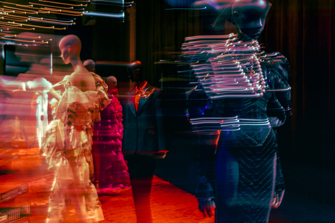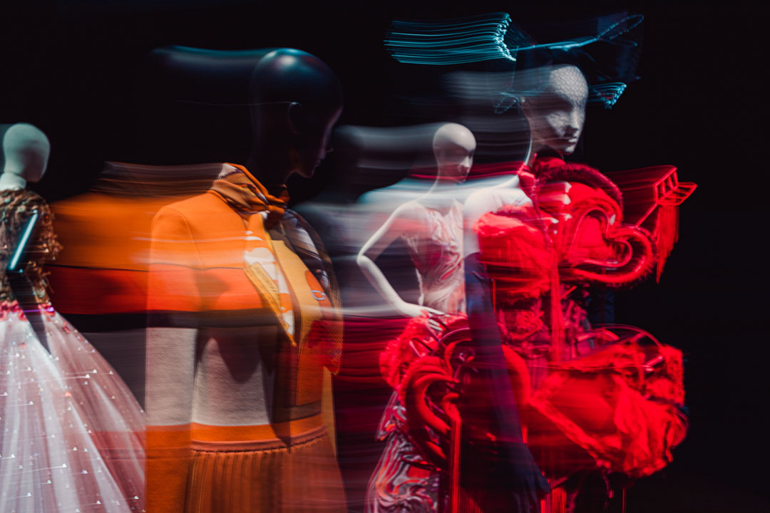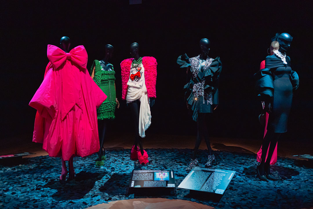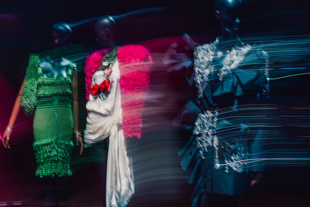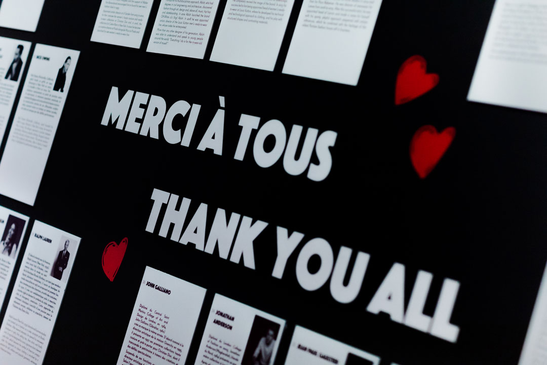 The exhibition has been made possible thanks to exceptional loans from AZ FACTORY and donations from the participating companies, loans from ADOBE, COMME DES GARCONS, GUO PEI, LOUIS VUITTON MALLETIER, WALES BONNER, the collaboration of LANVIN, and the support of RICHEMONT and HANS BOODT.