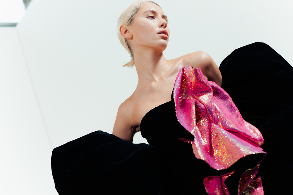 Alexandre Vauthier’s collections are characterized by their radical nature, expressed through both the precision in the cuts of his designs as well as the consistently reinvented volumes. Whether it is the intricate aspect of a pleat or the sparkle of a sequin, the Maison is renowned for its high precision and assertive sensuality.