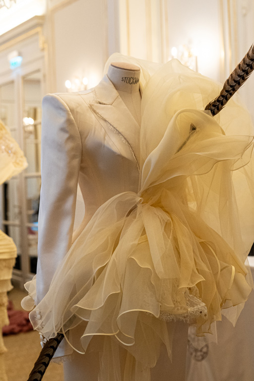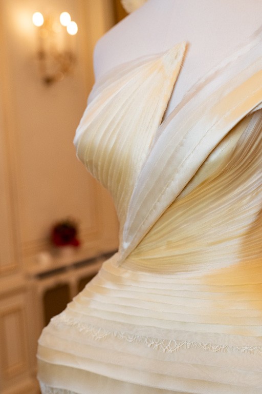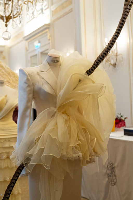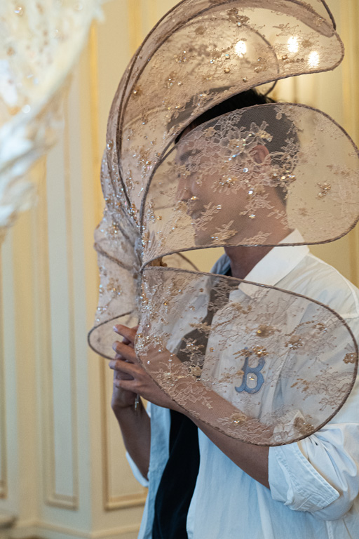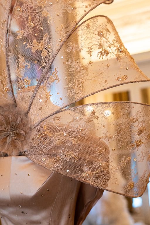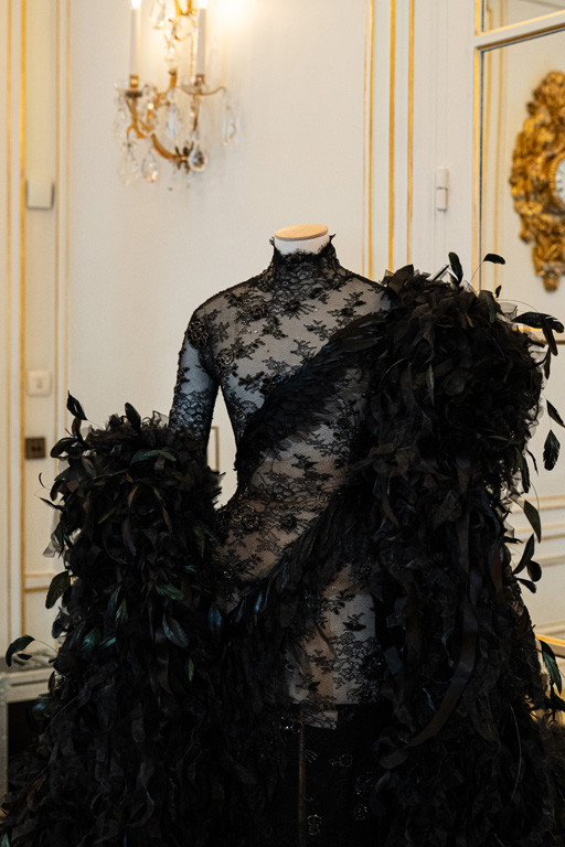 Finally, “Death” reflects on the cycle of life with a wing-like cape in gray-black, using perforated lace and floral embroidery to hint at life’s transience. Overall, the collection weaves together these themes, inviting reflection on the profound connections between nature and human experience.