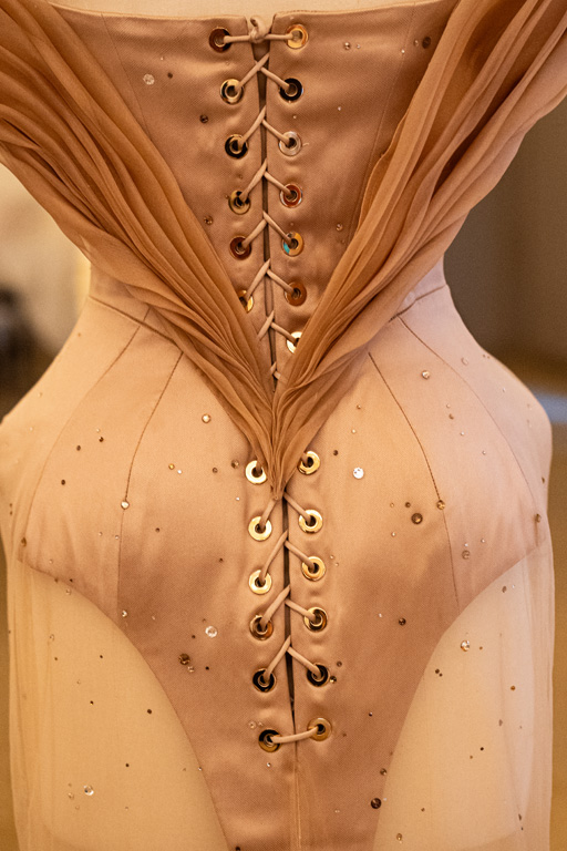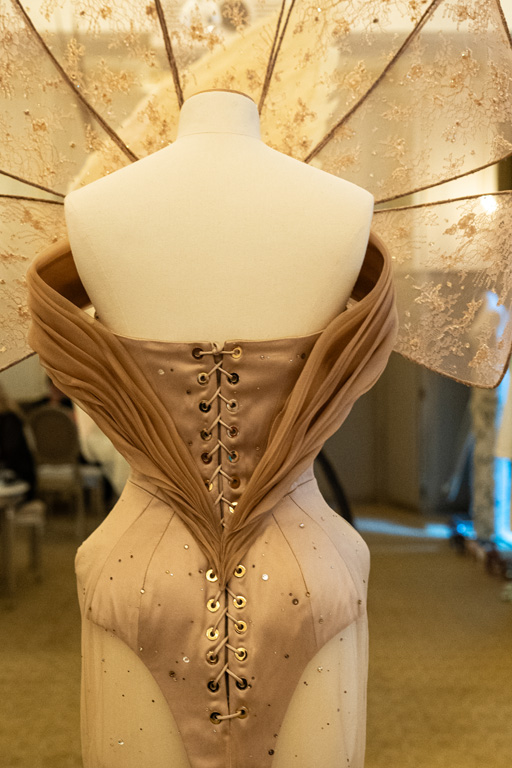 “Defence” explores protection through rhinestone mesh and boned lace, creating a sense of resilience.
