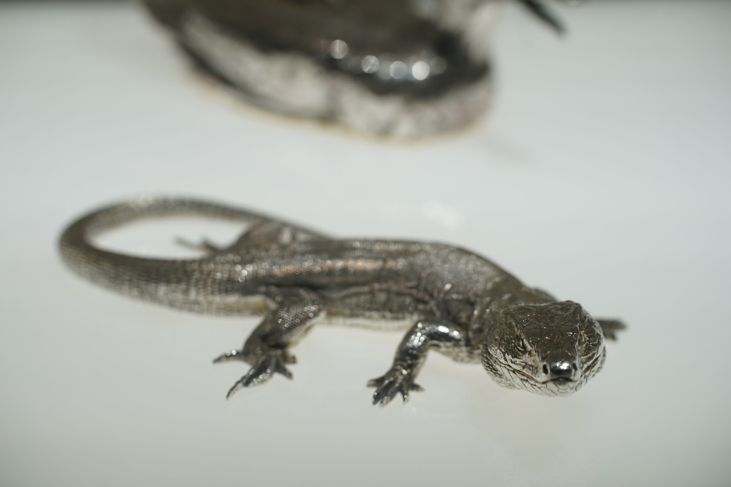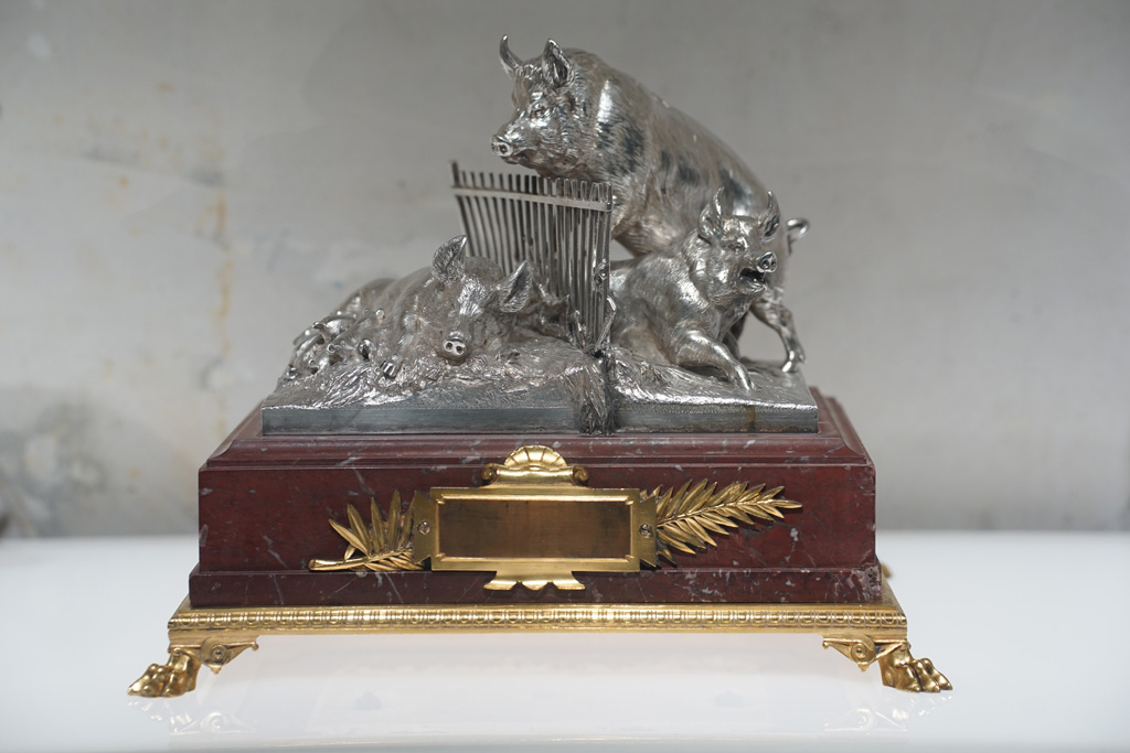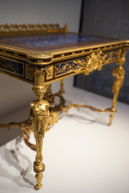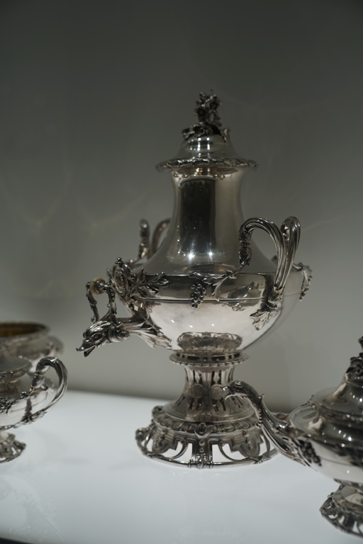 The exhibition displays over 600 pieces of silver and gold items, along with paintings and drawings. These pieces come from the Bouilhet-Christofle Collection and other important collections. Visitors will see a variety of items, from small spoons to large furniture. The exhibition highlights the use of different metals, like silver and gold, and shows creations made for famous places like the Ritz hotel and the Orient Express train.