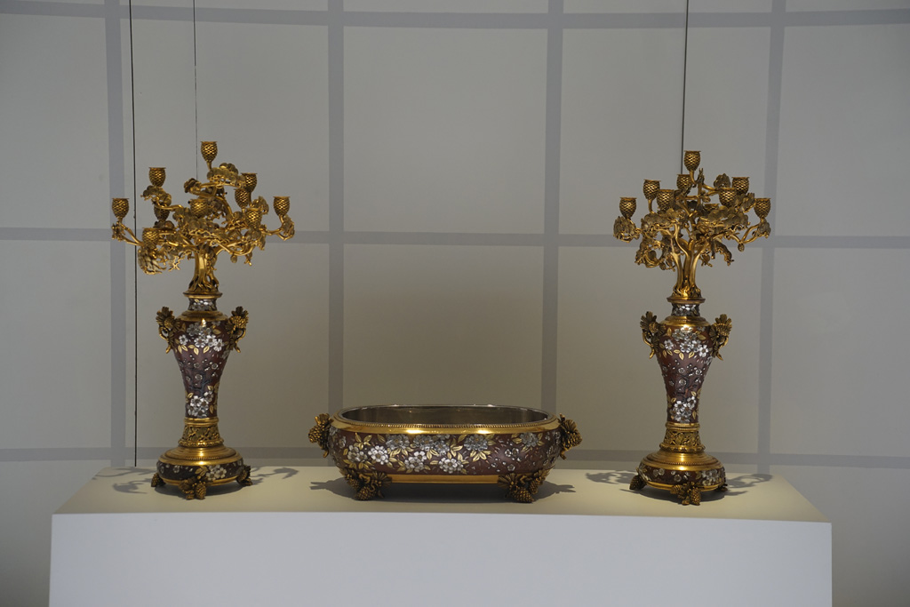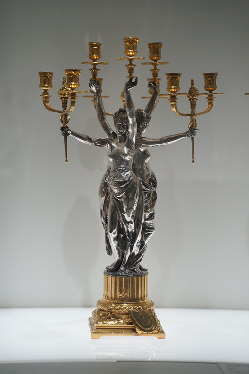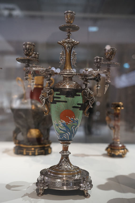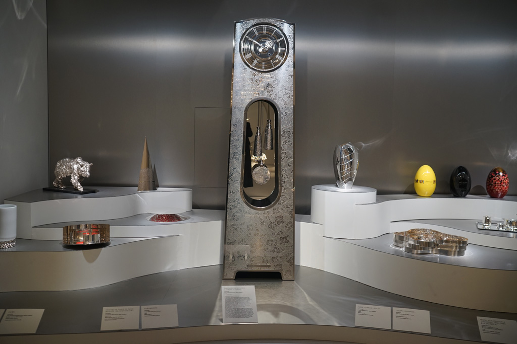 Some important pieces in the exhibition include the Flèche (Arrow) Candelabra designed by Gio Ponti in 1928 and a Vase by Émile Reiber from around 1874. These items show the quality and creativity of Christofle.