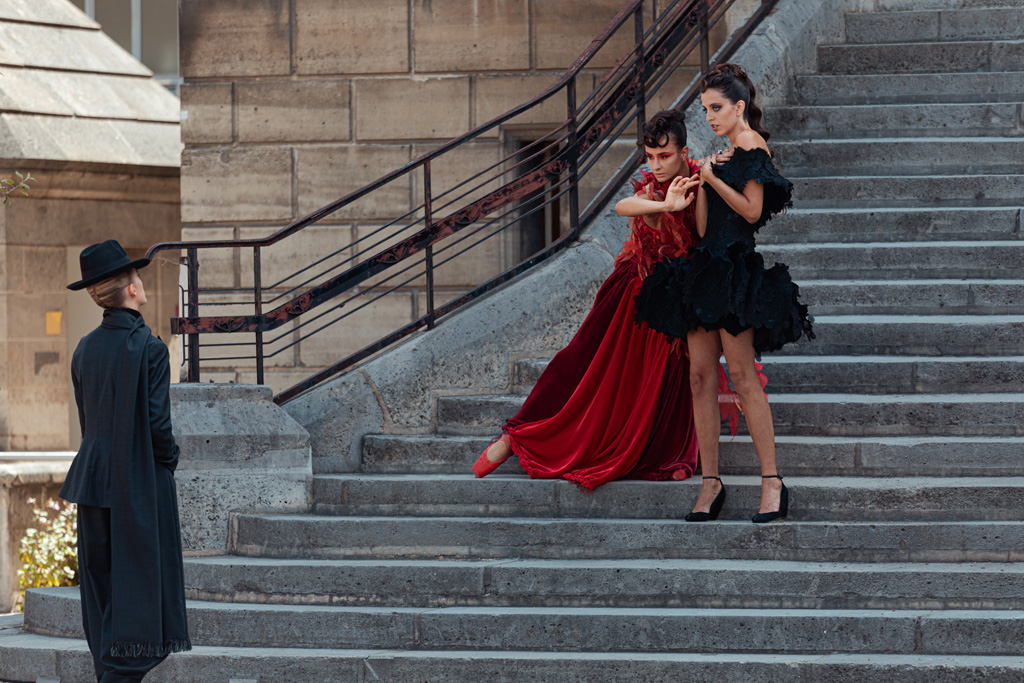 Raised in the French Basque Country, at his maternal grand-parents, this is a childhood inspired by his own roots, exploring books of photos, leading to discover that the Couture has always been part of the family spirit : a linen maid fabricating bride’s trousseaux, a seamstress, sheet weavers or even a military uniform tailoring company in Alsace and in Paris.