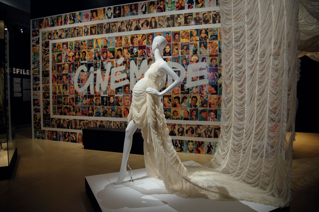 The dresses of Marilyn Monroe, Audrey Hepburn or Catherine Deneuve, the male wardrobe of Marlene Dietrich or the shorts of Rocky, the leotard of Superman, costumes and haute couture are exhibited nearby with pieces in velvet, metal and embroidery, designed by cinephile couturier Jean Paul Gaultier.