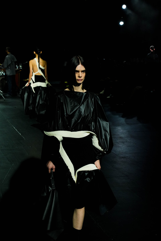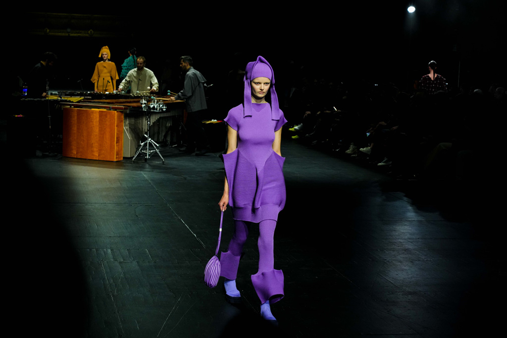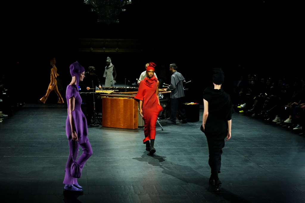 Presented on Friday, March 3 at Théâtre du Châtelet in Paris, the ISSEY MIYAKE AUTUMN WINTER 2023/24 COLLECTION, The Square and Beyond, revisits the convention in many creative professions that is built upon a square: a canvas, a music score, a piece of fabric… The collection engages with this rational shape and explores beyond—with original ideas and technologies—to develop garments of striking forms, introducing an unconventional aesthetic based on a new iteration of ma (the unfilled space) between the wear and the wearer.