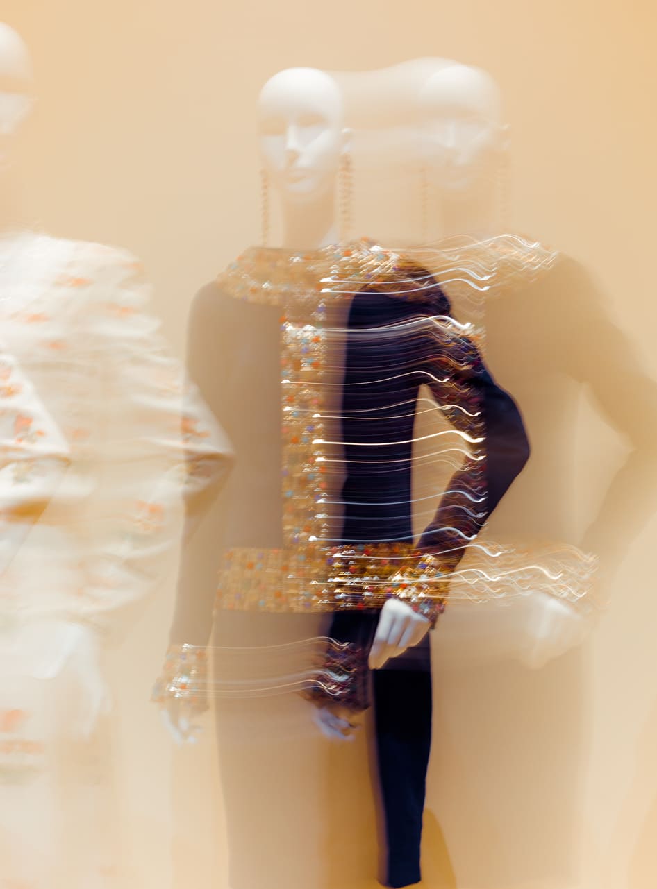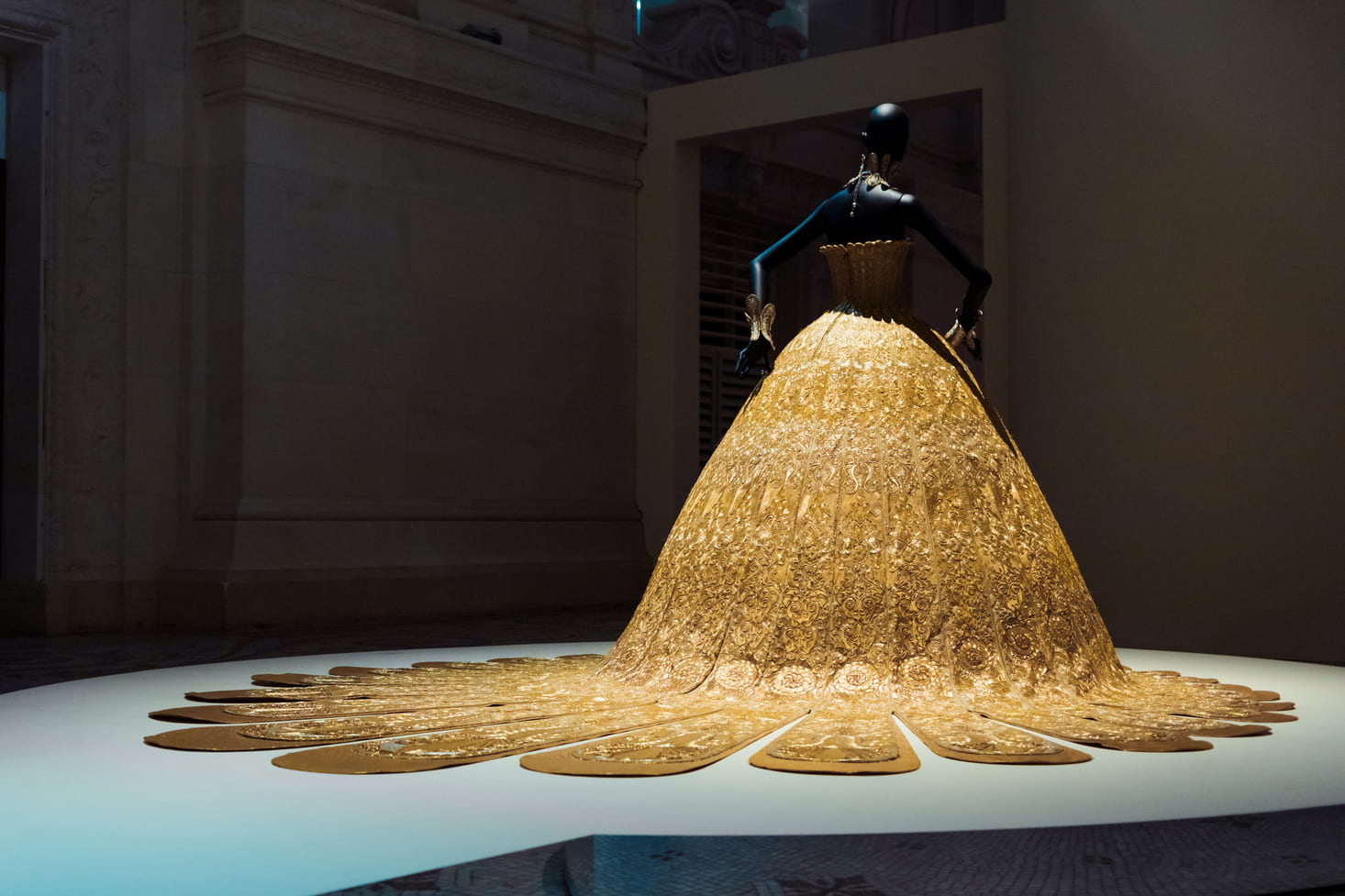 Design highlights in the exhibition include “the little black dress” by Gabrielle Chanel, the straw marquetry décors of Jean-Michel Frank, in addition to works by Hermès, Christian Dior, Louis Vuitton, Van Cleef & Arpels, Cartier and Tiffany & Co.