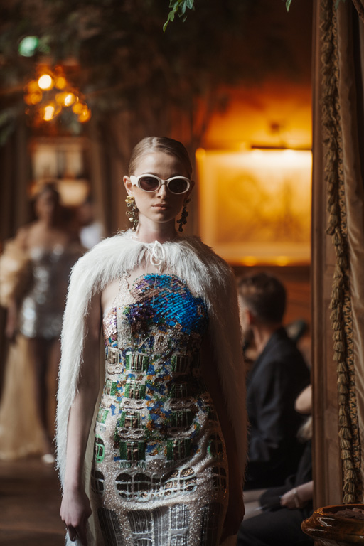 Moreno celebrates a new type of luxury with his project, which includes unique haute couture pieces, bespoke dresses, and pret-a-porter, merging traditional techniques with a cutting-edge approach.