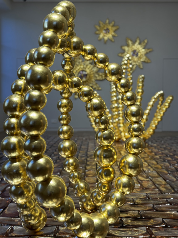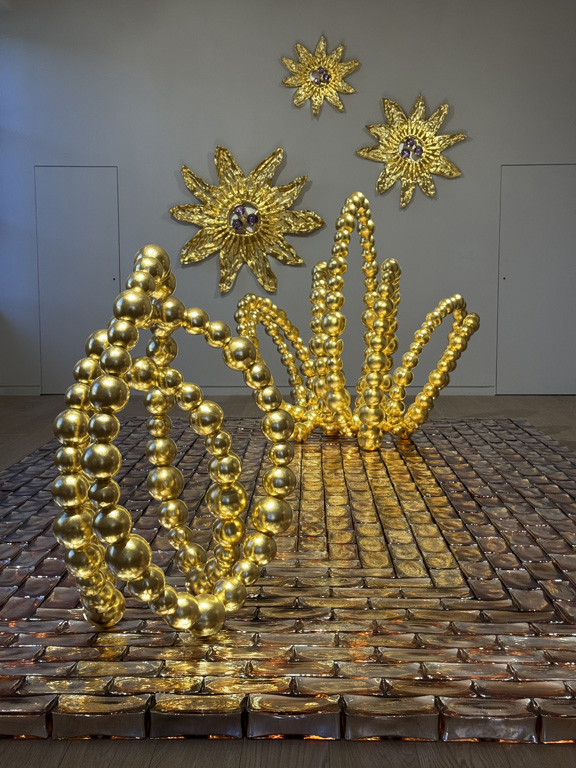 Gold art is inspired by the belief that the gold on Earth originated from the explosion of distant stars. Othoniel sees his gold sculptures as a tribute to this “stardust” from the cosmos. One of his most famous works, the “Gold Rose”, combines the delicate floral motif with the strength and preciousness of the gilded material, celebrating the beauty and value of art itself. Through this and other gold sculptures, Othoniel’s work explores a sensual minimalism, using simple forms and natural inspiration to highlight the abstract and the sublime.