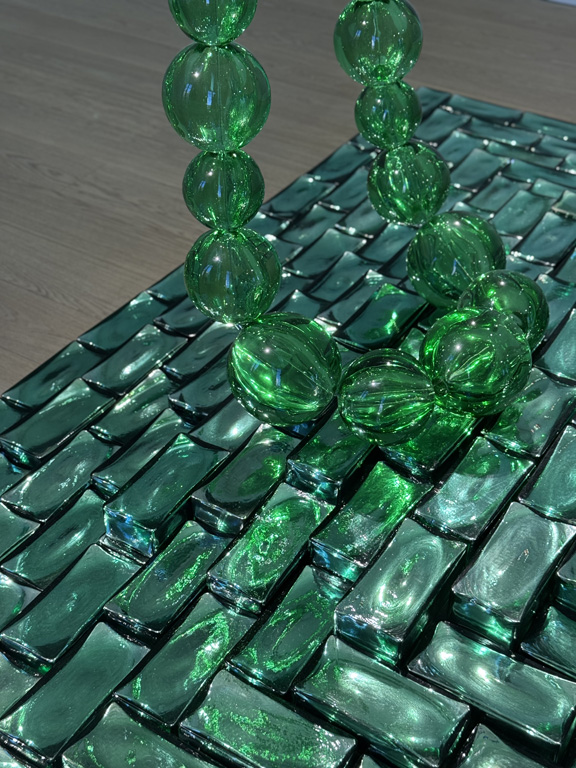 Minimalist sculptures, like the “Wonder Block” series, use simple geometric forms made of precious, light-reflecting materials to create a sense of wonder and magic. The glass cubes atop the column-like structures evoke both ancient monuments and mathematical precision, evoking childhood toys and dreamlike architectural forms. The mirrored Indian glass captures and transforms the surrounding light, turning each block into a miniature, ethereal structure. Through this rigorous yet sensual exploration of light and transparency, Othoniel’s minimalist art aims to reveal the marvelous and the sublime within the most basic of shapes and materials.