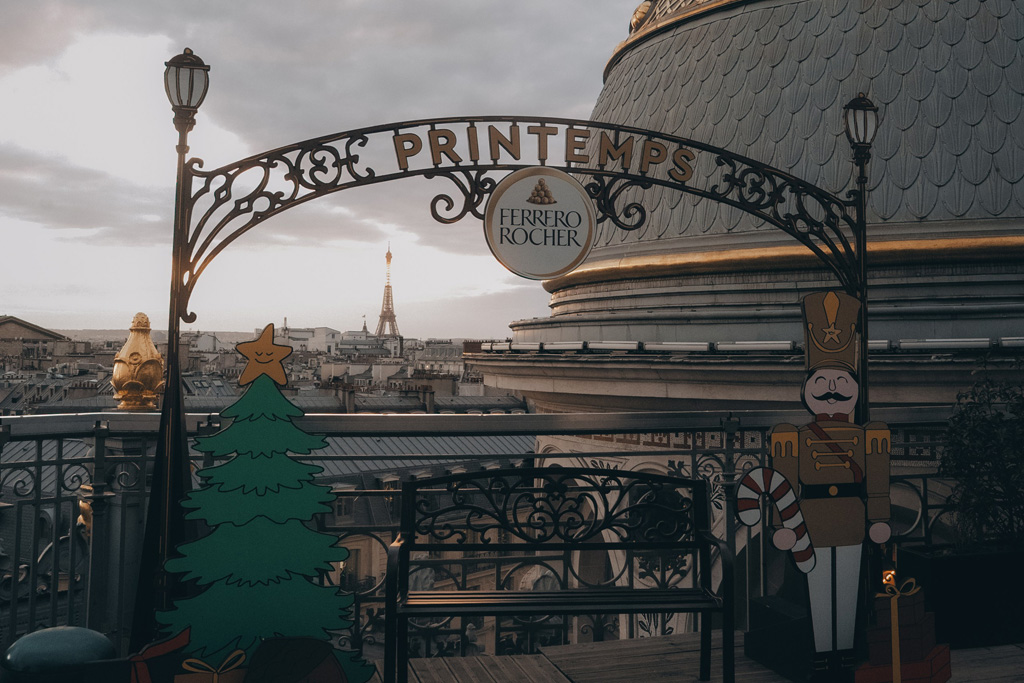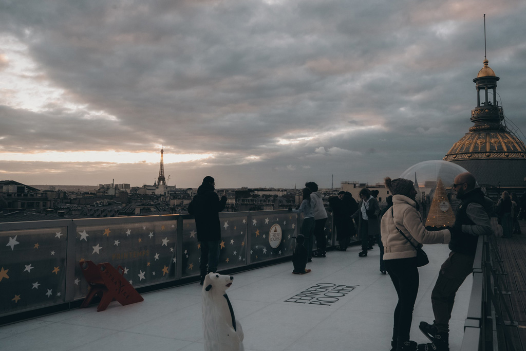 Inside the store, visitors can admire an 8-meter high Christmas tree along with the return of the New York ice rink by Ferrero Rocher on the rooftop terrace of the 7th floor, providing a magical view of Paris reminiscent of the iconic Rockefeller Center.