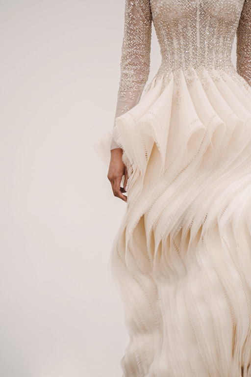 Today, his brand is synonymous with creative artistry and modern elegance, worn by sought-after socialites and international celebrities such as Naomi Campbell, Julianne Moore, Jennifer Lopez, and Beyonce Knowles. To address the shift in the fashion industry towards sustainability, Rami Al Ali launched Rami Al Ali White in 2020, an annual edition of ready-to-wear evening and bridal designs that prioritize longevity over overproduction.