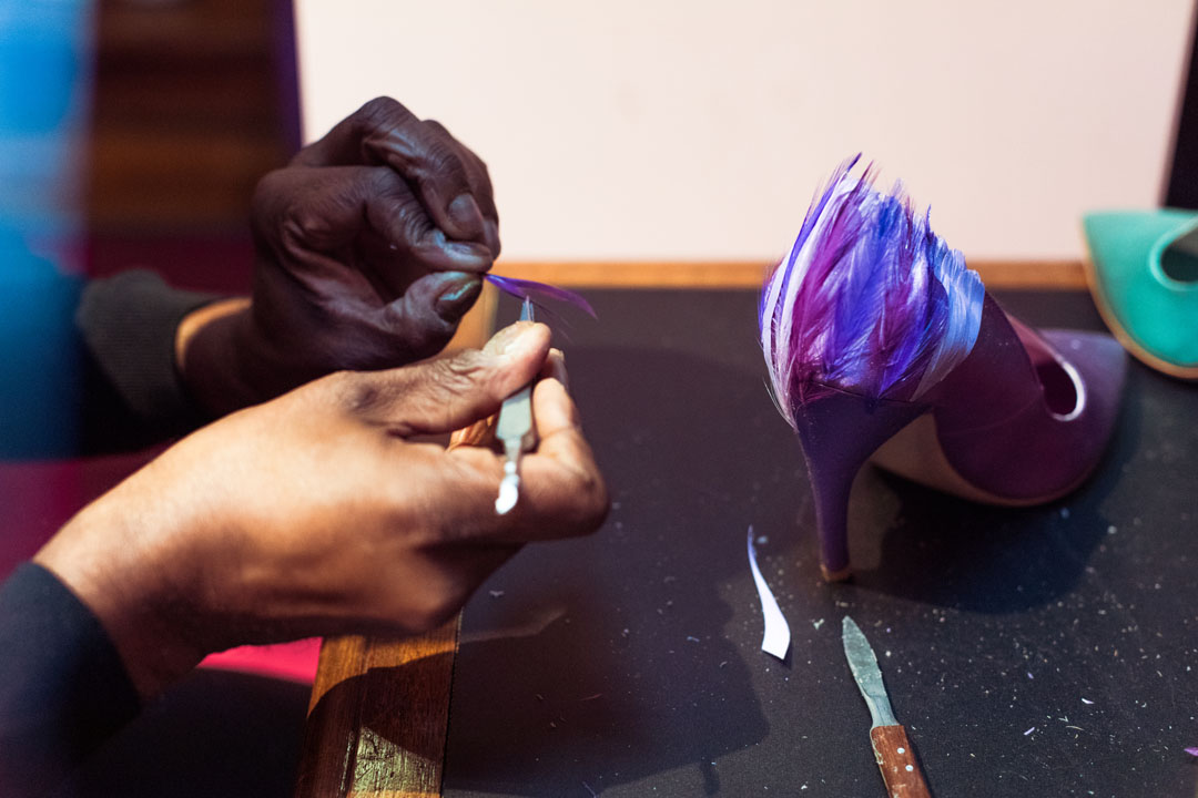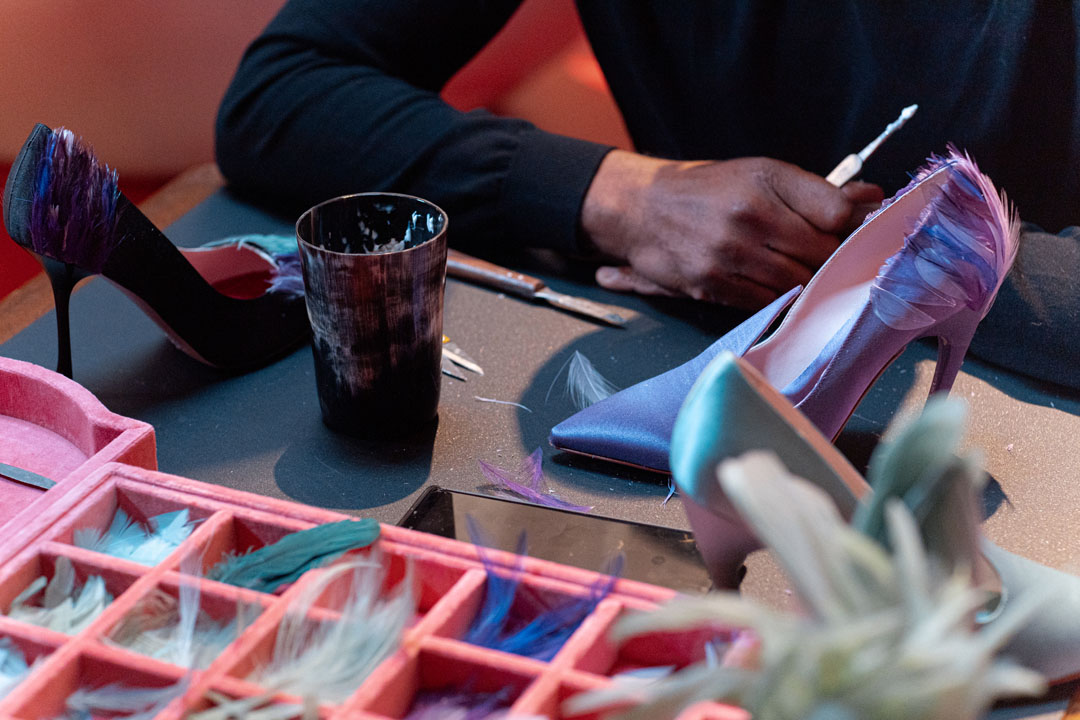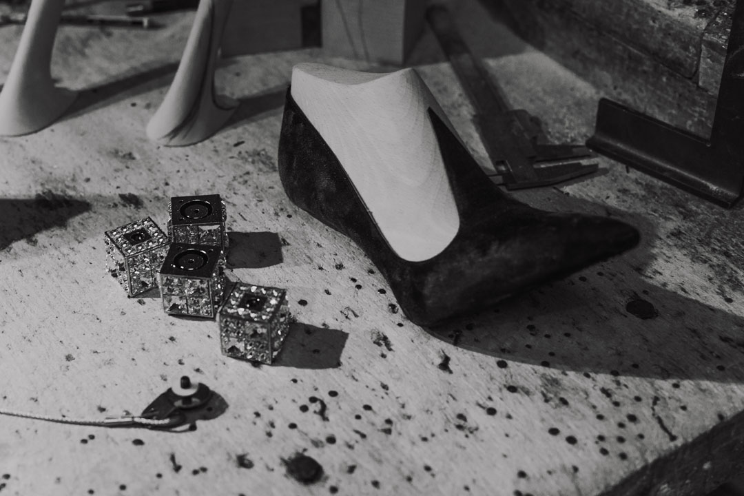 Gherardo Felloni has produced a gorgeous display of the Maison’s timeless modernity. Inspired by pieces from the archives, he has replicated the famous, delicately curved Choc heel invented by Roger Vivier, to design a brand-new pump adorned with feathers. Past meets present in an ode to creativity. Like precious jewellery worn below the knee, these splendid footwear creations put a spring in one’s step. Fanciful, always and forever.