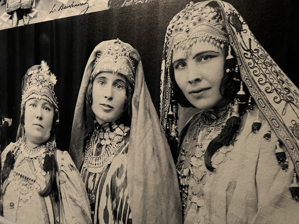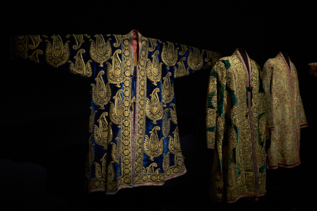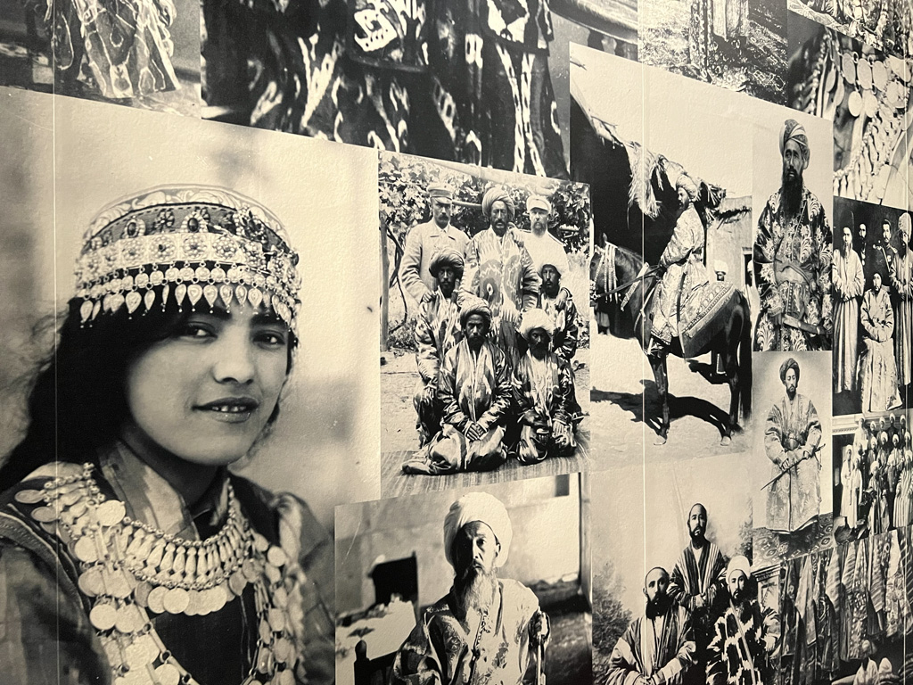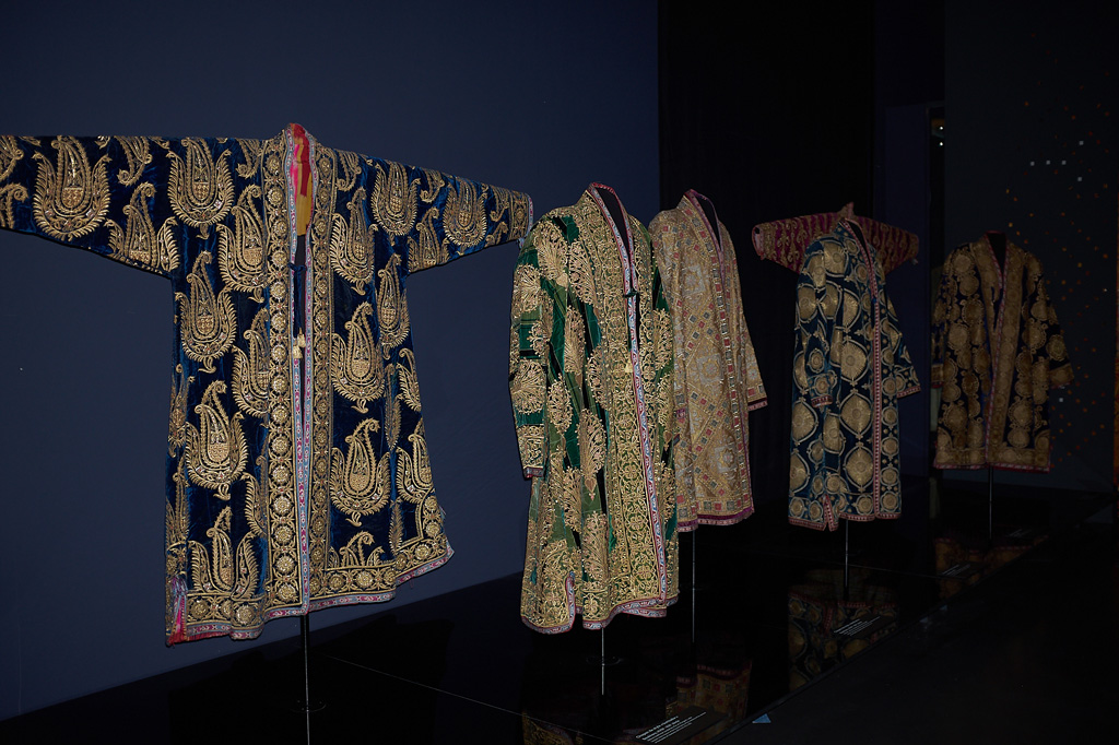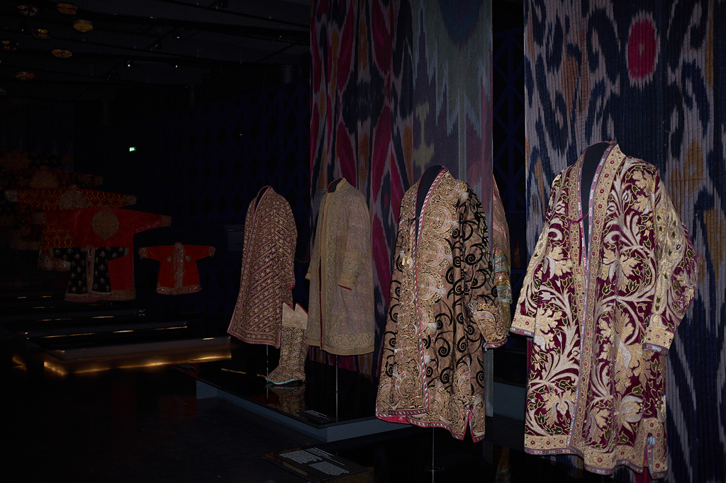 Sumptuous chapan coats and gold-embroidered accessories from the Emir’s court, painted wooden saddles, silver horse harnesses set with turquoises, precious Suzanis embroidered hangings, carpets, silk ikats, jewellery and costumes from the nomadic culture as well as than about fifteen orientalist paintings. All represented on more than 1100 square meters of the museum.