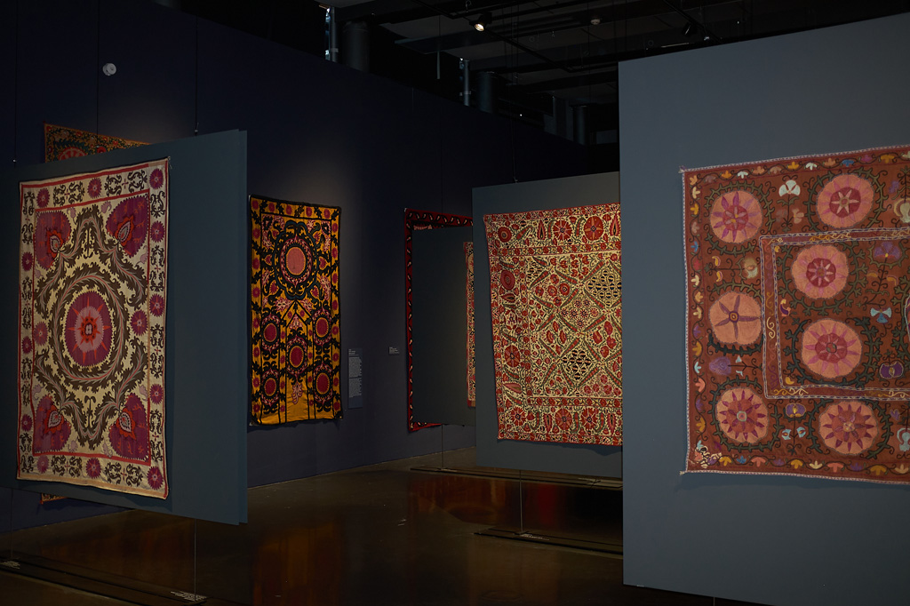 “On the Roads of Samarkand” magnifies the renaissance of artisanal splendours in the 19th and early 20th centuries, constitutive of Uzbek identity. Textiles, like the powers of the Islamic world, play a key role in this; Bukhara embroidery, in particular, occupies a special place among the many art forms of Uzbekistan.