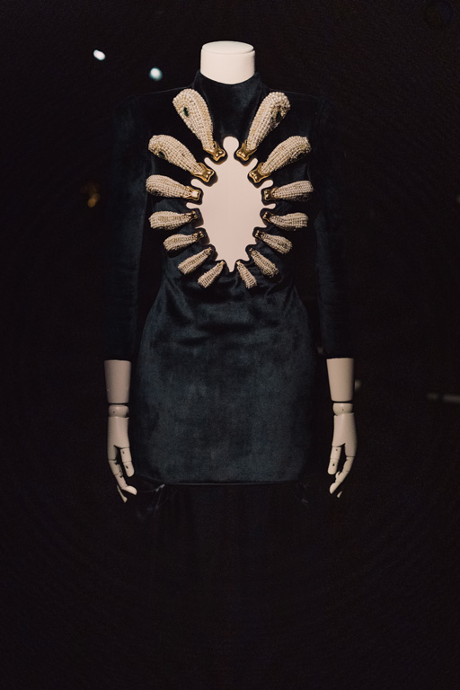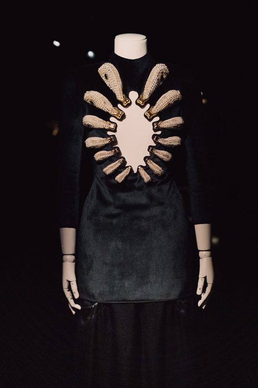 “Shocking ! Les mondes surréalistes d’Elsa Schiaparelli” brings together 577 works including 212 silhouettes and accessories by Schiaparelli herself, displayed alongside iconic paintings, sculptures, jewelry, perfumes, ceramics, posters, and photographs by the likes of Schiaparelli’s dear friends and contemporaries: Man Ray, Salvador Dalí, Jean Cocteau, Meret Oppenheim and Elsa Triolet.