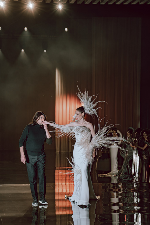 By 30, he earned the title of official couturier for Jean Louis Scherrer, also dressing for cinema. In 2007, he opened his own haute couture house, creating unique pieces sculpted from precious materials, which are worn by celebrities around the world.