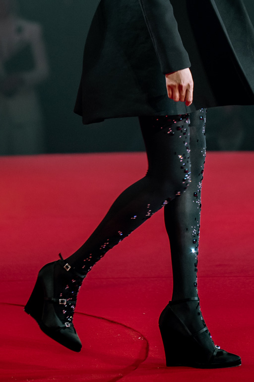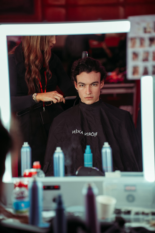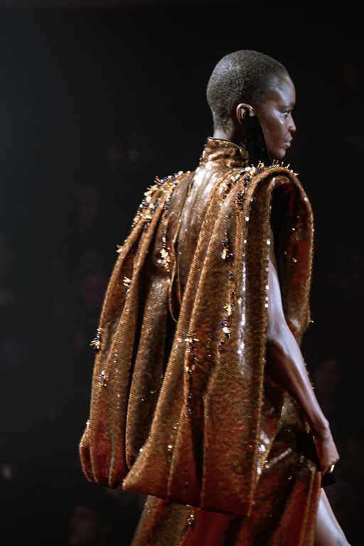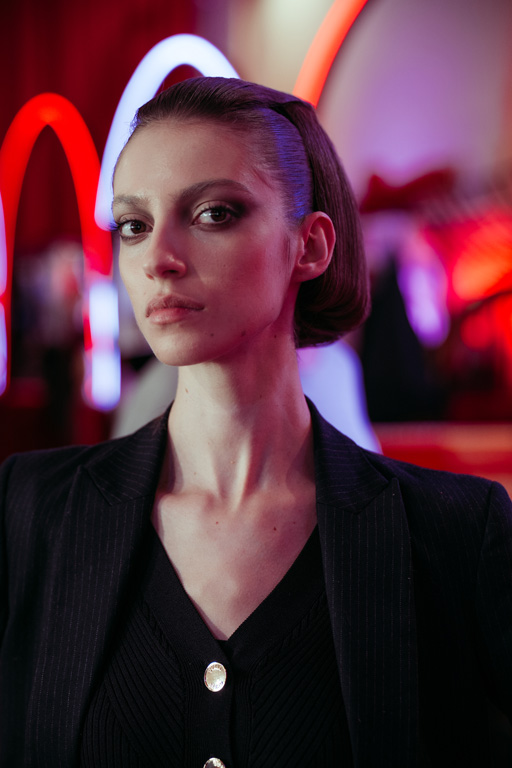The runway unfolded like a procession with deliberately moving silhouettes showcasing the collection’s unstable balance, accompanied by Erik Satie’s hypnotic rhythms infused with emotional depth from Nino Rota and Fellini’s films—blending tracks like “Lazy Sunday” by Bijan Olia, “Promise You Will” by Andy Cooper, and “Honest” by Matt Goodman for dynamic, heat-infused urgency.