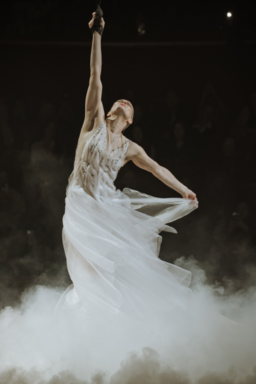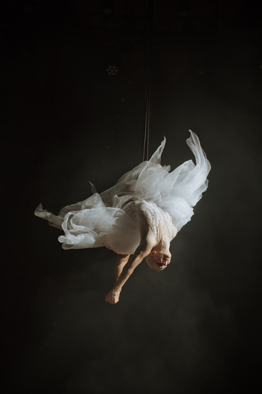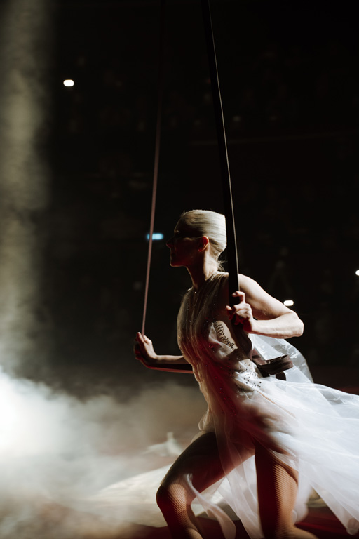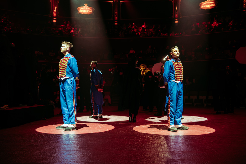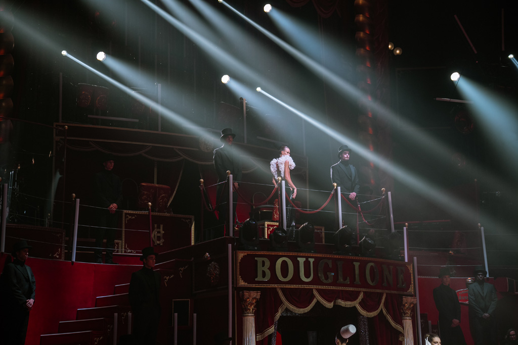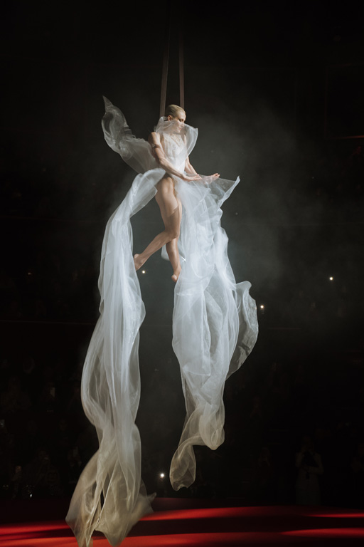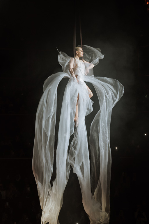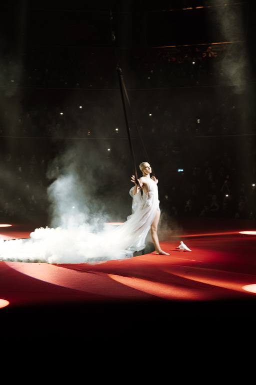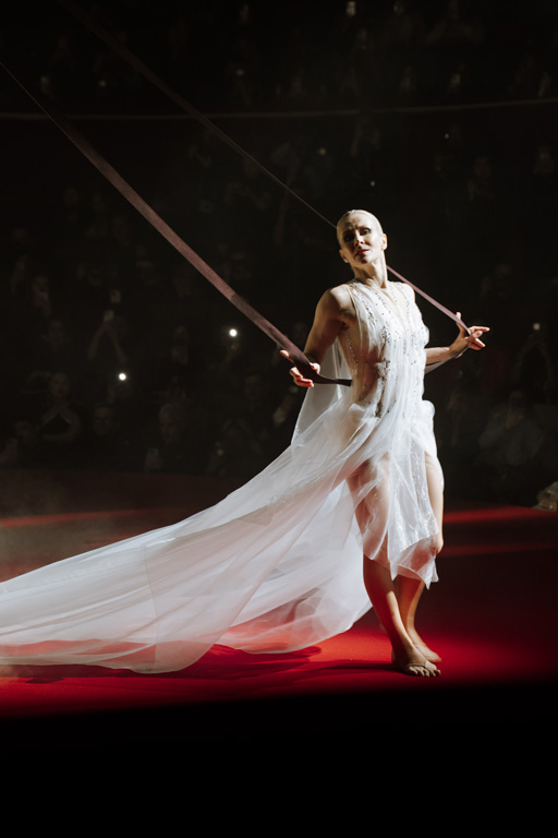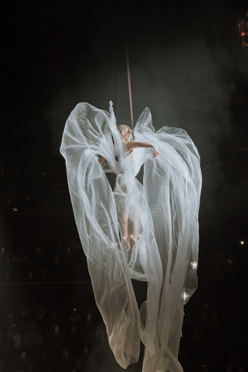 The show concluded with an aerial acrobatic performance by Natalia Bouglione, integrating live circus elements tied to the venue’s heritage for dramatic spectacle.