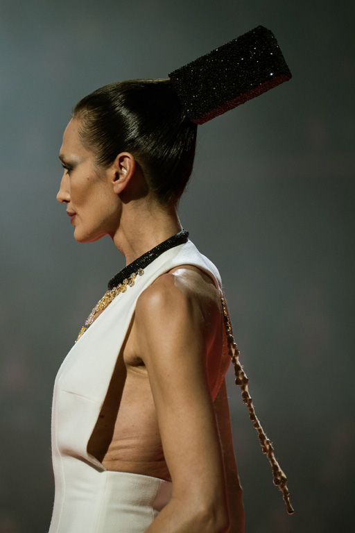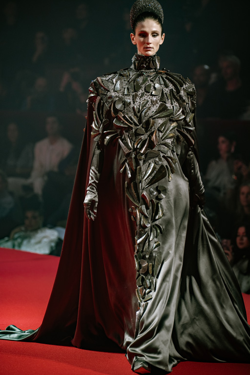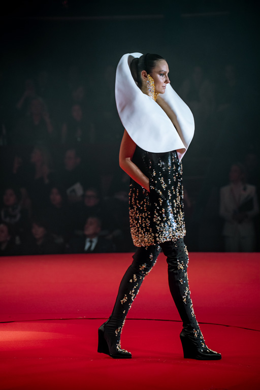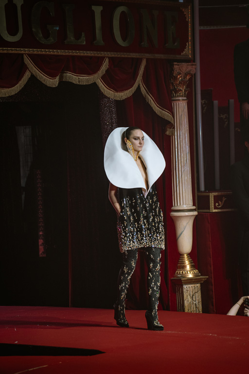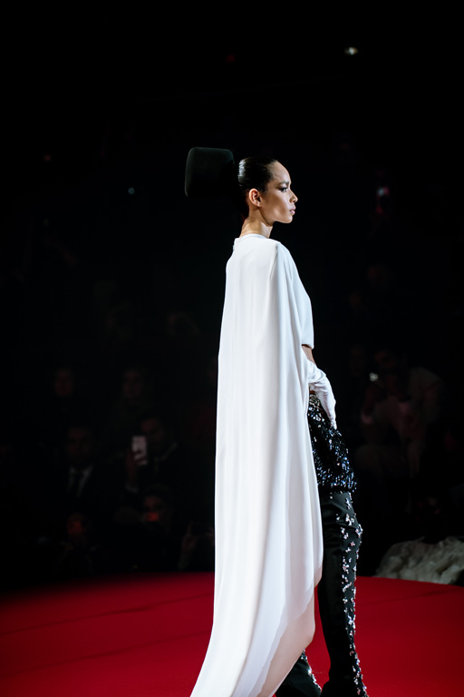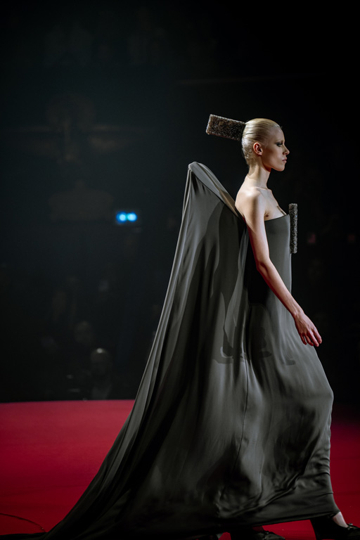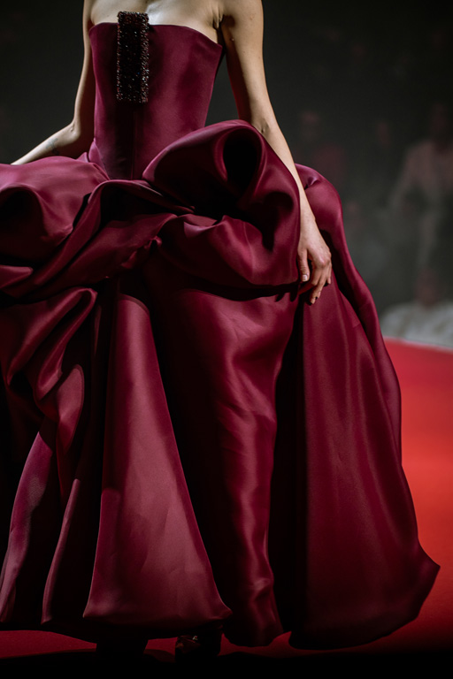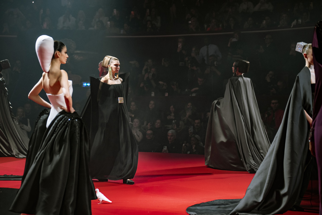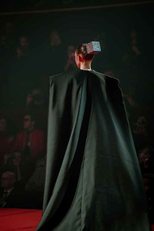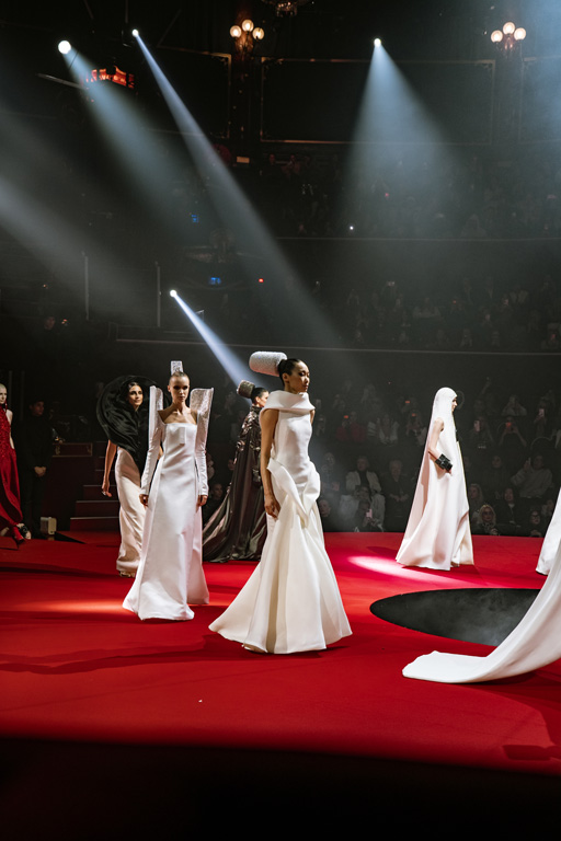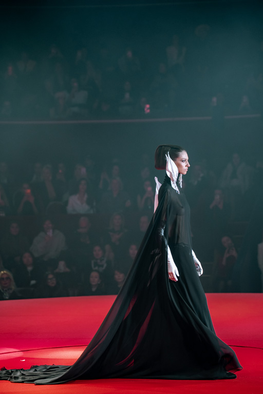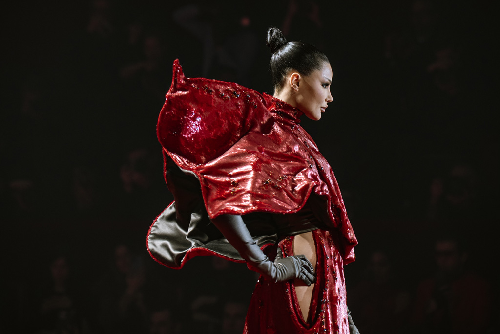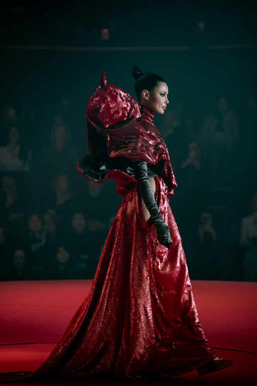 Inspired by Pablo Picasso’s Cubist innovations and his connection to circus archetypes like the Auguste, Ringmaster, Pierrot, and solitary clown—as seen in the 1917 ballet Parade—the collection captures the circus as a temple of imagination and a factory of dreams. It features asymmetrical coats, structured capes, coat-dresses, voluminous balloon pants, jumpsuits, structured shorts, bustiers, and oversized coats in an architecture of silence, crafted from gazar, duchess satin, crepe, organza, chiffon, velvet, with black-white palettes accented by red, burgundy, and caramel tones, plus geometric sculptural forms, dramatic draping, plexiglass cube brooches set in diamonds, and gem embellishments that blur fashion and art. Launched during Paris Haute Couture Week (January 26-29, 2026), embroidery acts as a language using diamonds and crystals to convey light rather than wealth, while silhouettes subvert movement for red-carpet glamour, challenging boundaries with constant tension between body and material, fragility, and beauty.