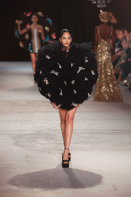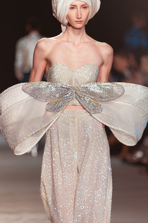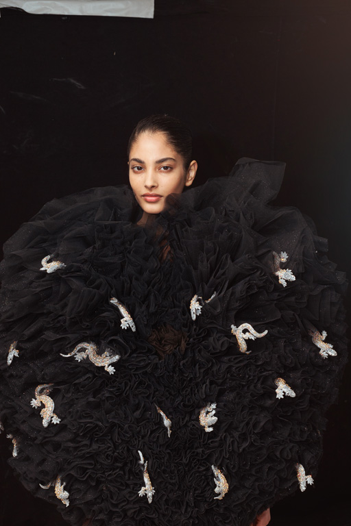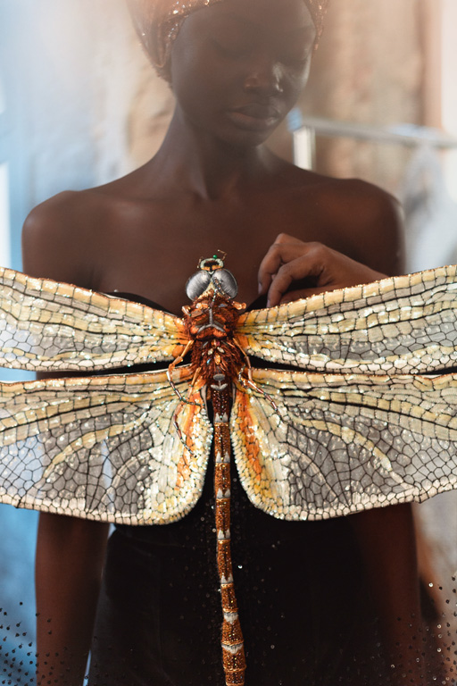 Through couture sculptures, the collection aims to remind us of the crucial role these creatures have played in maintaining the balance of life on our planet for millions of years.