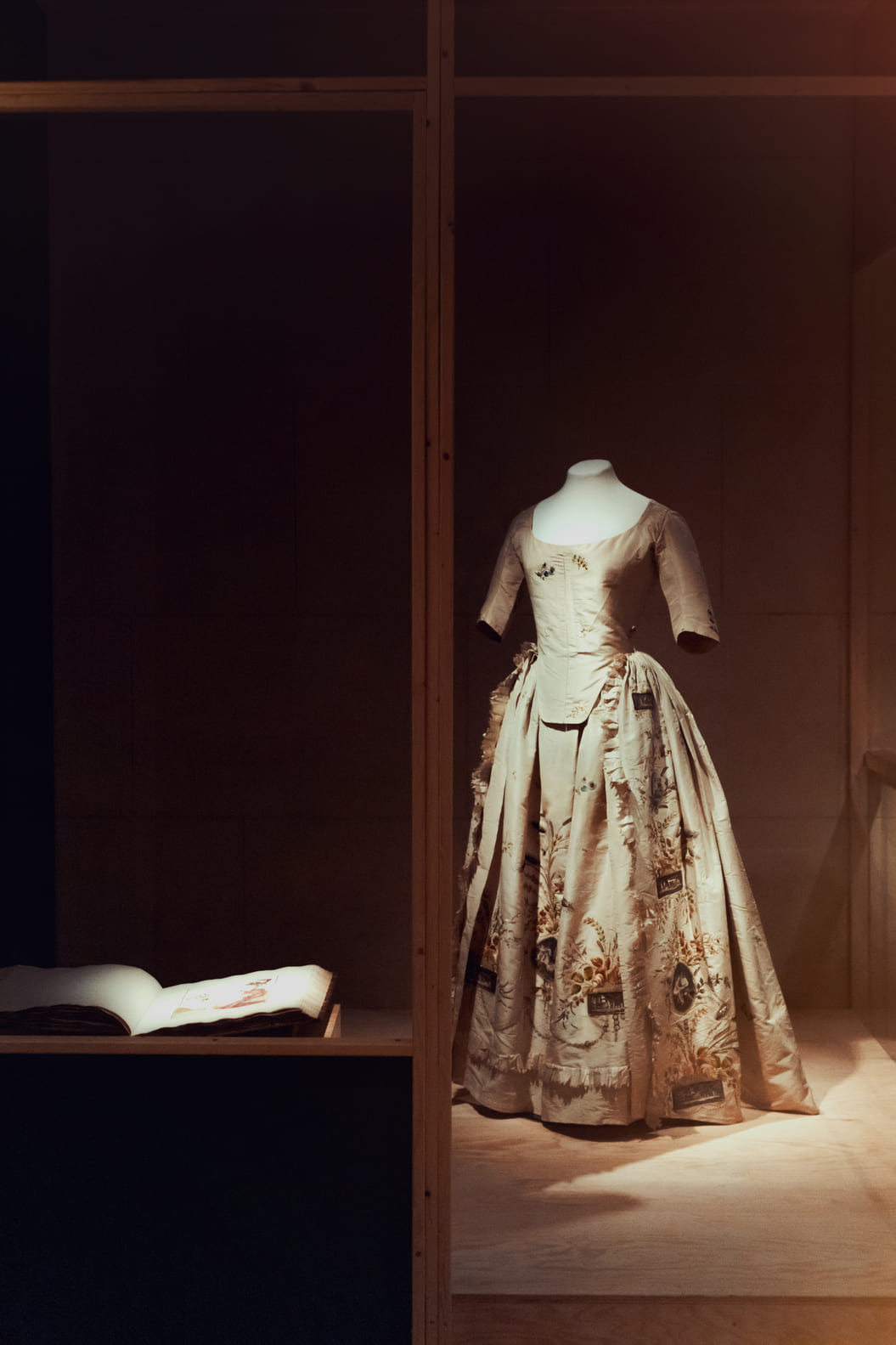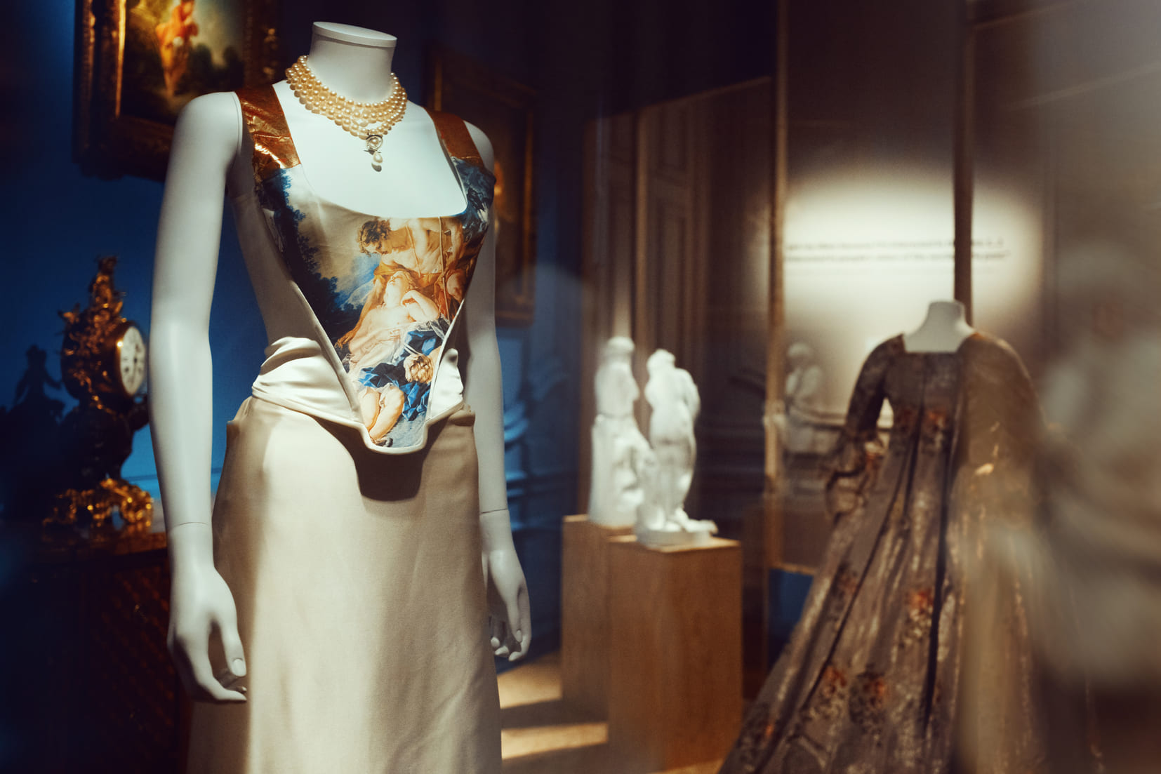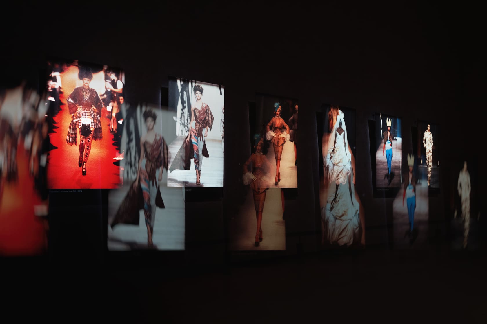 The exhibited models come from the private collection of Lee Price. Runway looks, private heritage & collaboration products are presented alongside with pieces from the archives, belonging to the museum, including a sixteenth-century doublet with gold thread for example.