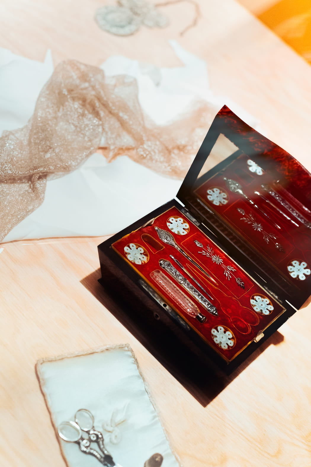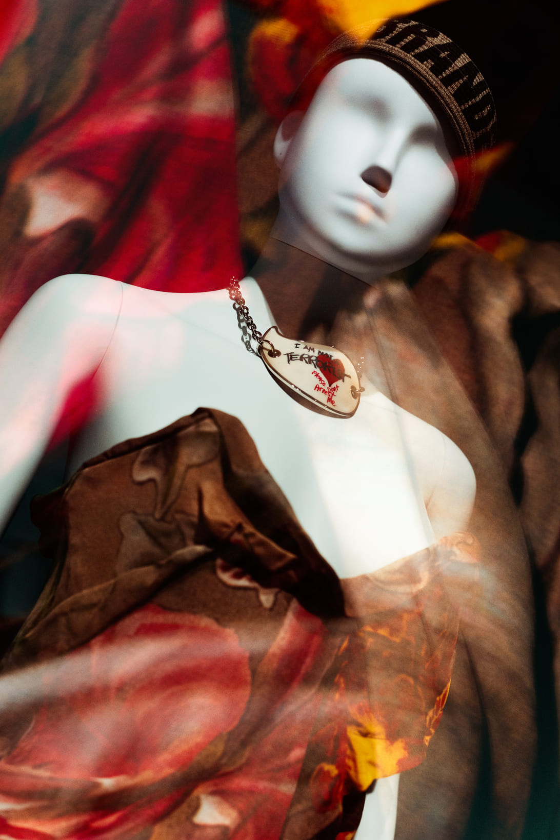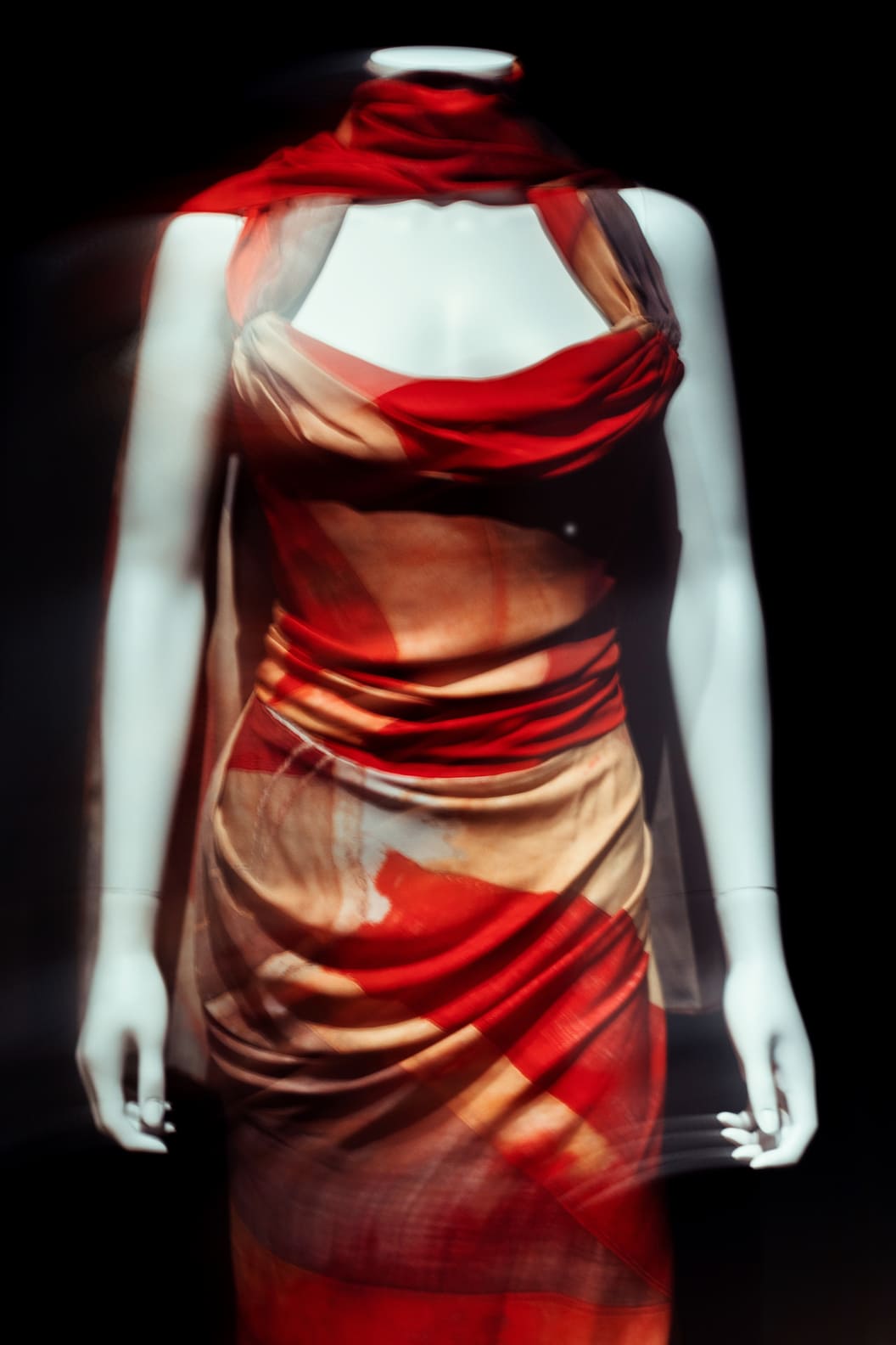 The exhibited models come from the private collection of Lee Price. Runway looks, private heritage & collaboration products are presented alongside with pieces from the archives, belonging to the museum, including a sixteenth-century doublet with gold thread for example.