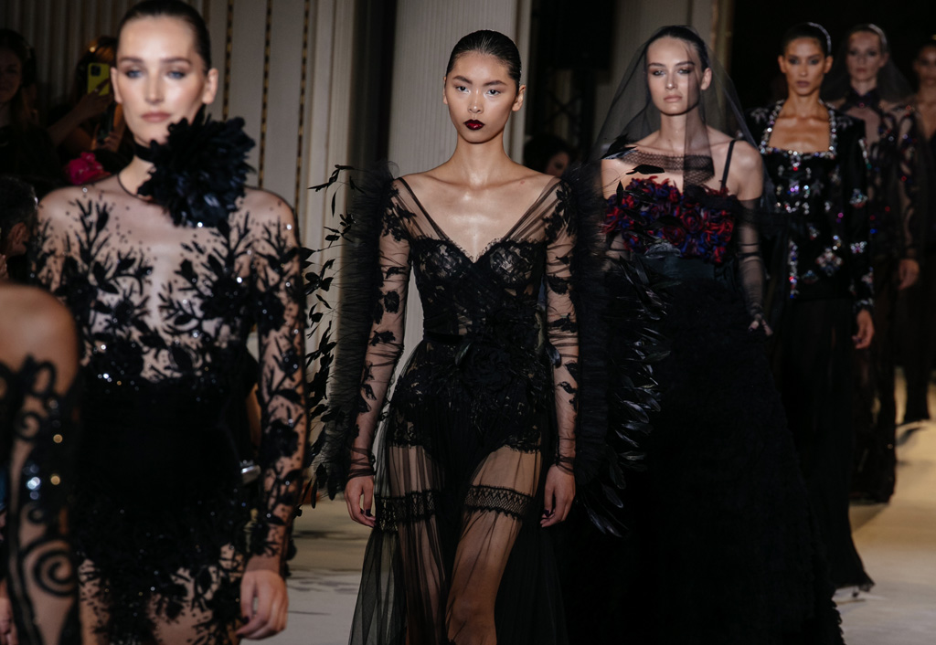 Zuhair Murad, known for his vibrant and bold collections, stepped out of his comfort zone and embraced the elegance of black. This was a significant change for the designer as he sought to explore new avenues and unlock the boundless expanse of the nocturnal realm.